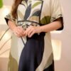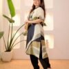 Auvoria Abstract Printed Muslin Kurti Set with Pure Hand Khatli Work