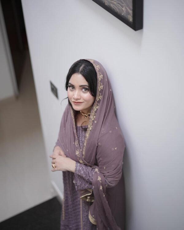 Embrace the elegance of the heavens with Auvoria’s Celestial Anarkali Suit—a masterpiece woven in soft georgette and adorned with intricate embroidery that dances like stars in the night. The 46-inch kurti flows with grace, its sheer georgette fabric delicately embellished with handcrafted embroidery on the neckline and sleeves, creating a luminous effect fit for grand celebrations.