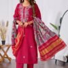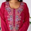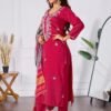 Auvoria Chanderi Silk Embroidered Kurti Set with Chinon Dupatta – Wine Red