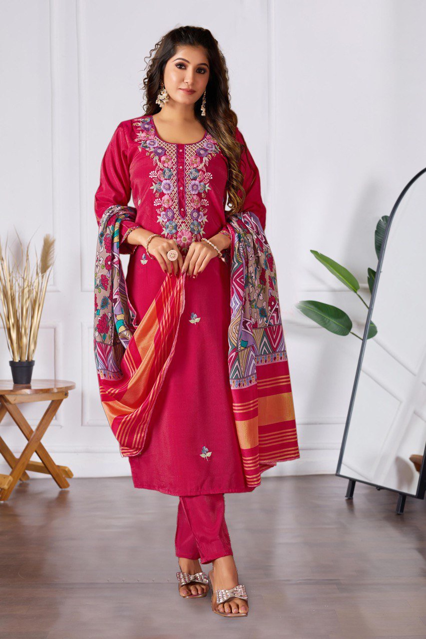 Bring timeless elegance to your ethnic wardrobe with this stunning Auvoria Chanderi Silk Kurti Set.