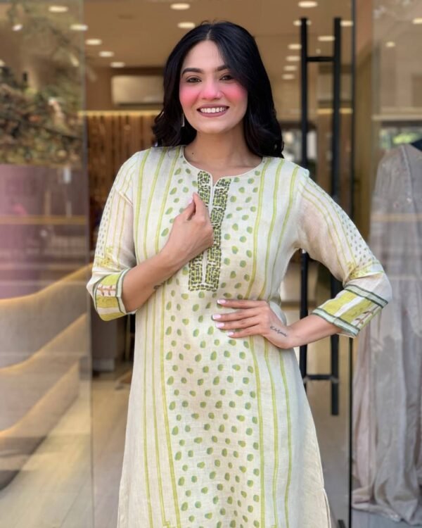 Kurti: Lilen Silk (Embroidered, 45 inch Length, Bust Up To 44 inches, Full Inner)