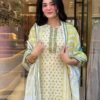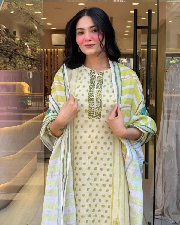 Step into the spotlight with Auvoria’s Majestic Lilen Silk Suit Set, a celebration of silk’s natural sheen and exquisite embroideries that promise elegance and grace. Draped in a 45-inch kurti made of rich lilen silk and a complementing full inner, this set flatters bust sizes up to 44 inches with ease. The plush chanderi silk bottoms, fitting waists up to 38 inches with a length of 37 to 38 inches and a full inner, balance comfort and style perfectly. A 2.20-meter chanderi silk dupatta printed with digital artistry adds a final flourish of grace and beauty. Ideal for celebrations, soirées, and every grand moment, this ensemble invites you to embody your regal self with Auvoria.