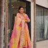 The ensemble is elevated with a beautifully embroidered chanderi dupatta, meticulously detailed with delicate threadwork that catches the light with every movement. Designed for ceremonial evenings, festive gatherings, or special celebrations, this suit set wraps you in regal comfort and timeless beauty.