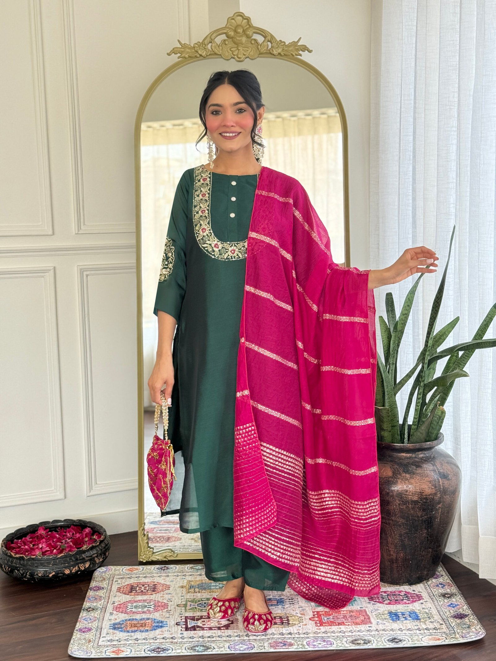 Completing this regal attire is the 2.20-meter chanderi dupatta, adorned with digital prints that capture tradition with a contemporary twist. This ensemble captures the essence of festive celebrations, cultural gatherings, and moments where you want to feel your absolute best.