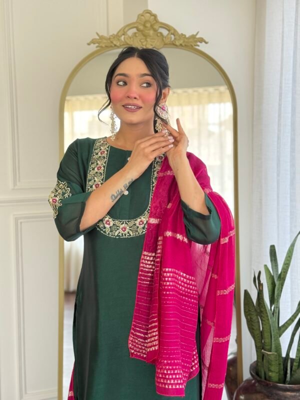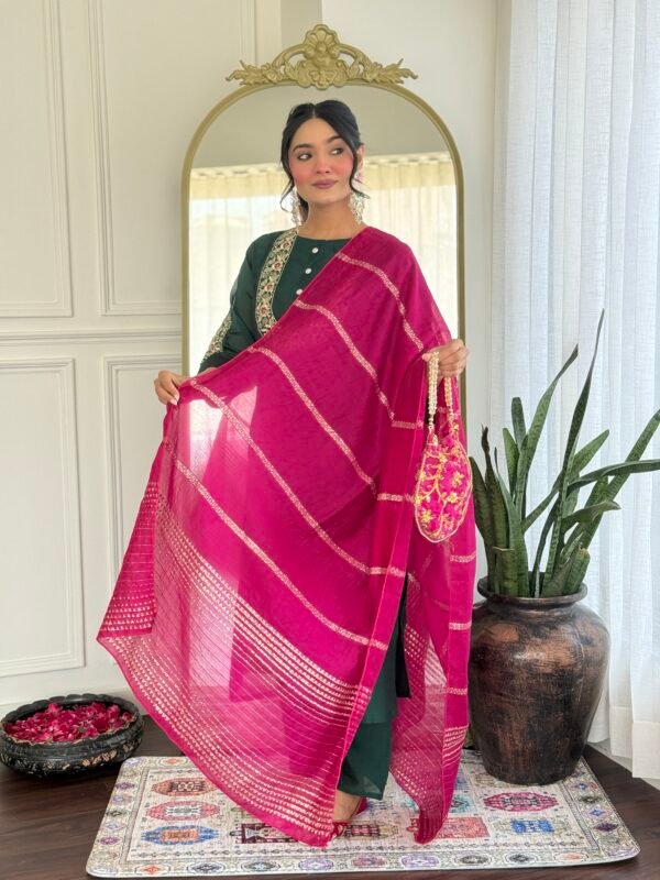Bottom: Chanderi (Waist up to 38″, Length 37–38″, Full Inner)