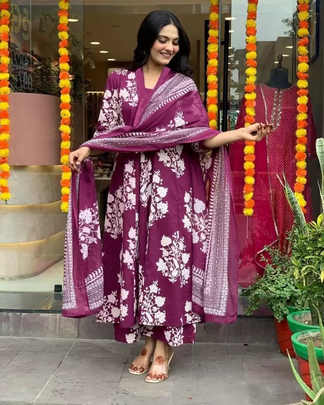 Women Viscose Purple Straight Kurta And Pant Set With Dupatta - Auvoria