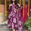 Women Viscose Purple Straight Kurta And Pant Set With Dupatta